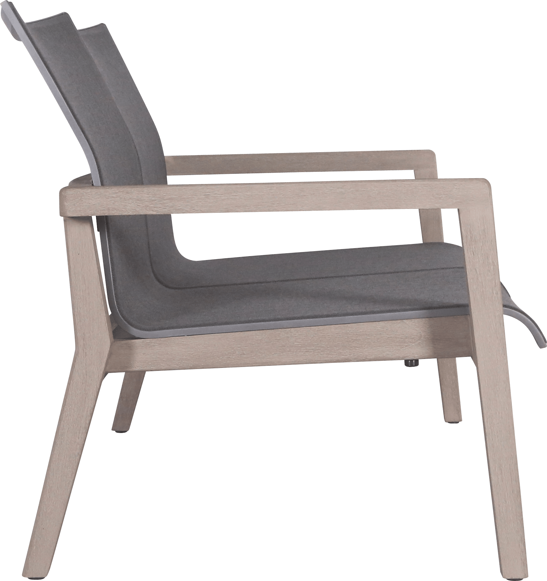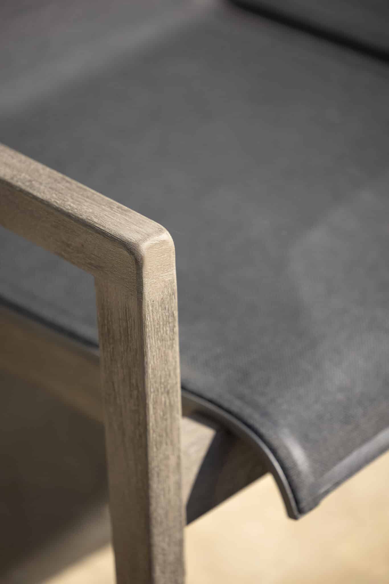 L’assise en toile tissée graphite apporte une finition sobre et moderne. Elle s’intègre facilement dans différents styles d’aménagement extérieur.