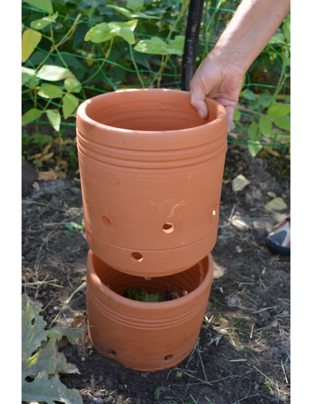 Le Composteur d’extérieur en taille L (8 litres) est idéal à installer en pleine terre au jardin. Vous transformez vos biodéchets en engrais en or ! Le compost enrichit en continu la terre en matière organique : il aide à maintenir la biodiversité du sol en prévenant les maladies des plantes. Ces composteurs sont évolutifs et modulables : ils peuvent s’empiler, se déplacer facilement et se complètent parfaitement avec nos poteries d’arrosage Oyas®.