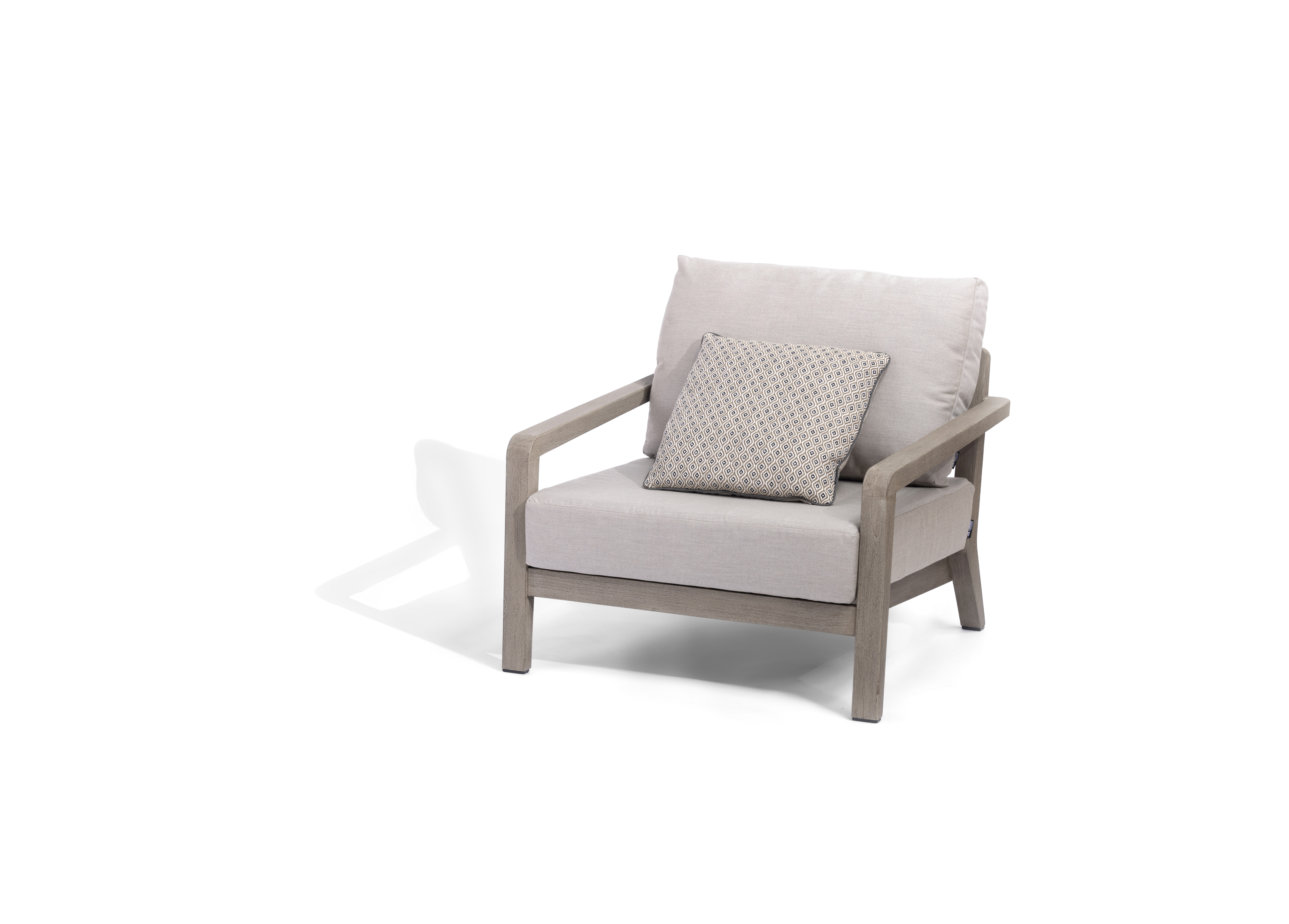 fauteuil COPENHAGUE Agora Panama fossil conçu pour aménager un espace extérieur confortable avec un design épuré et un format compact. Il s’intègre facilement dans un espace lounge extérieur.