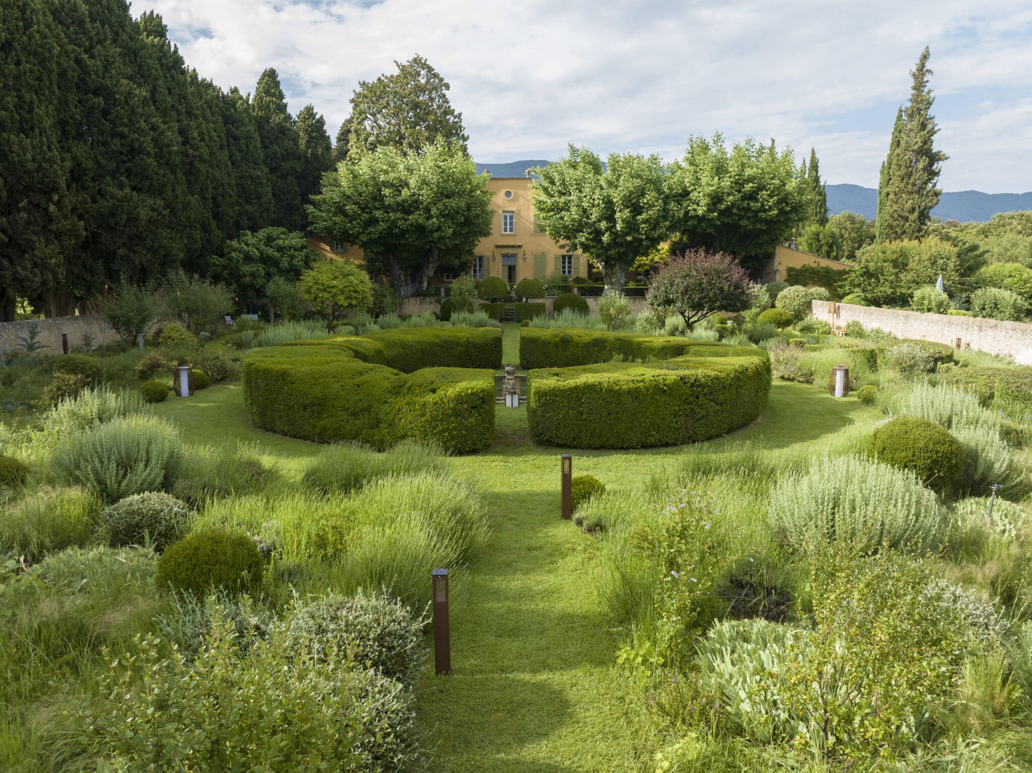 espaces extérieurs tels que les jardins, terrasses et zones paysagères.