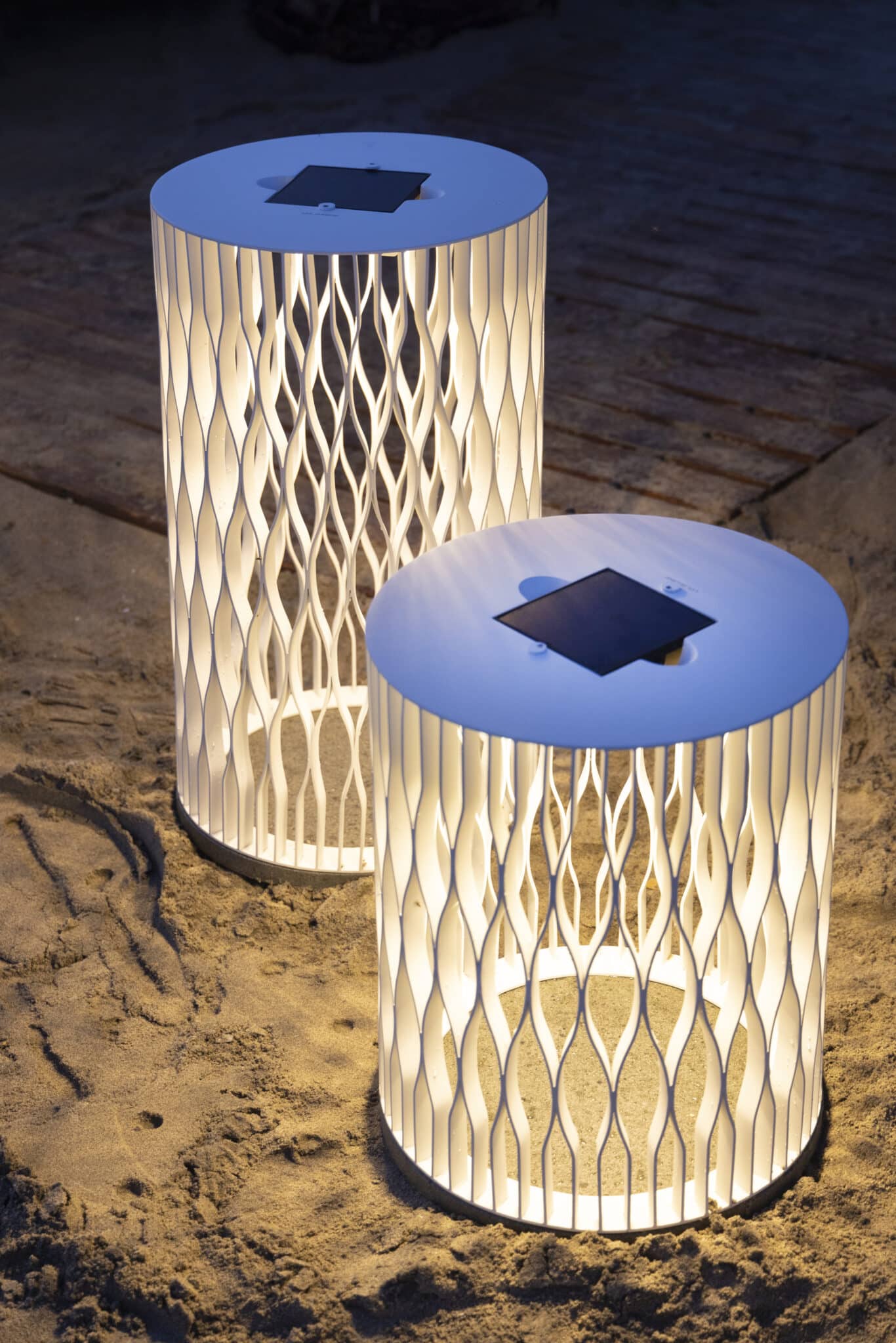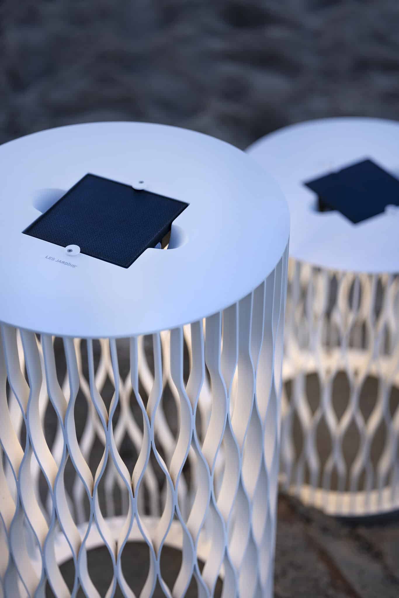 Fabriquée en aluminium blanc avec une base en granite, cette lampe offre stabilité, robustesse et résistance aux conditions extérieures.