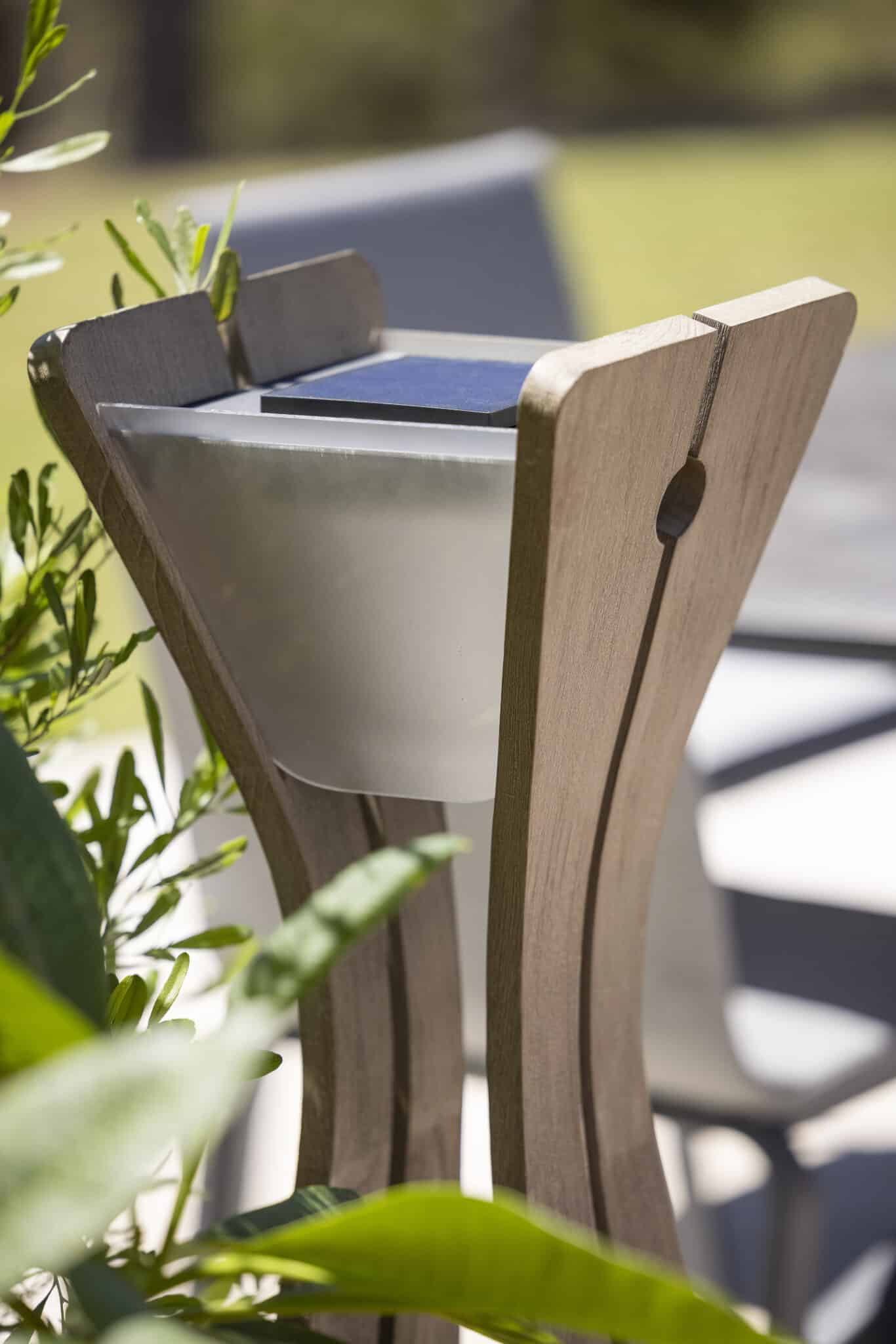 Fabriquée en teck massif finition Duratek®, cette lampe extérieure offre une excellente résistance aux conditions climatiques.