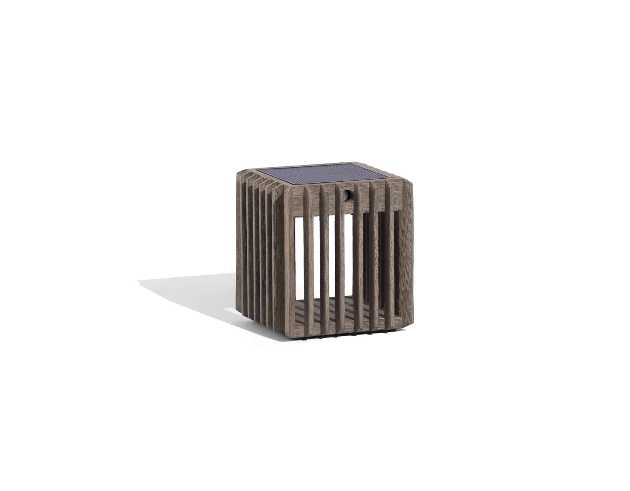 La Lampe de table VERTI séduit par son design cubique en teck massif finition Duratek®.