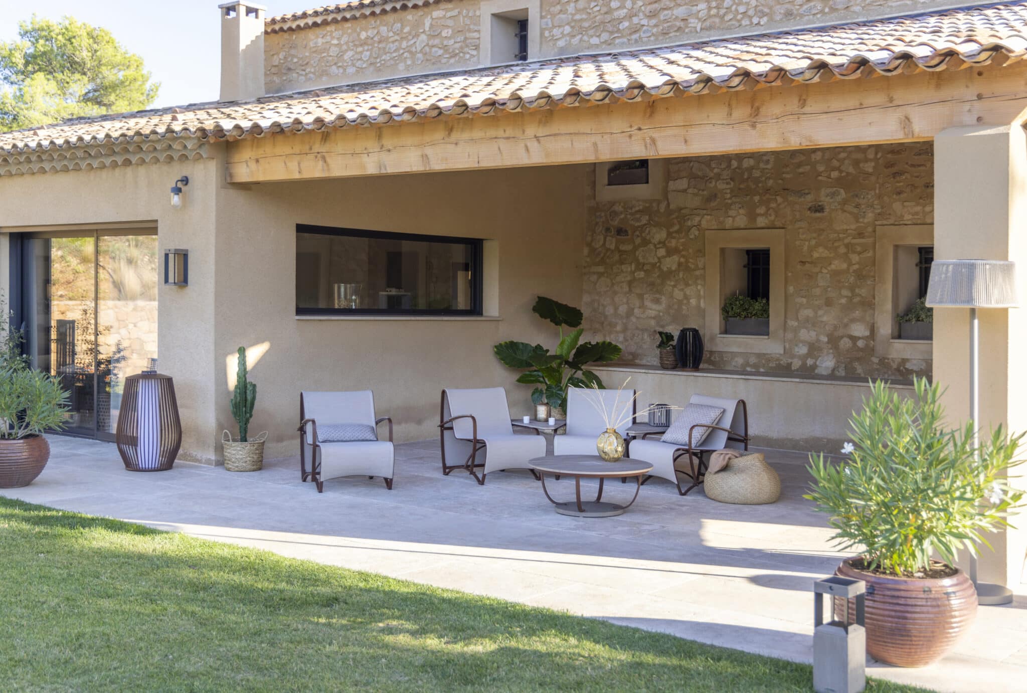 Son habillage vertical en bois crée un jeu d’ombres raffiné et une ambiance naturelle.