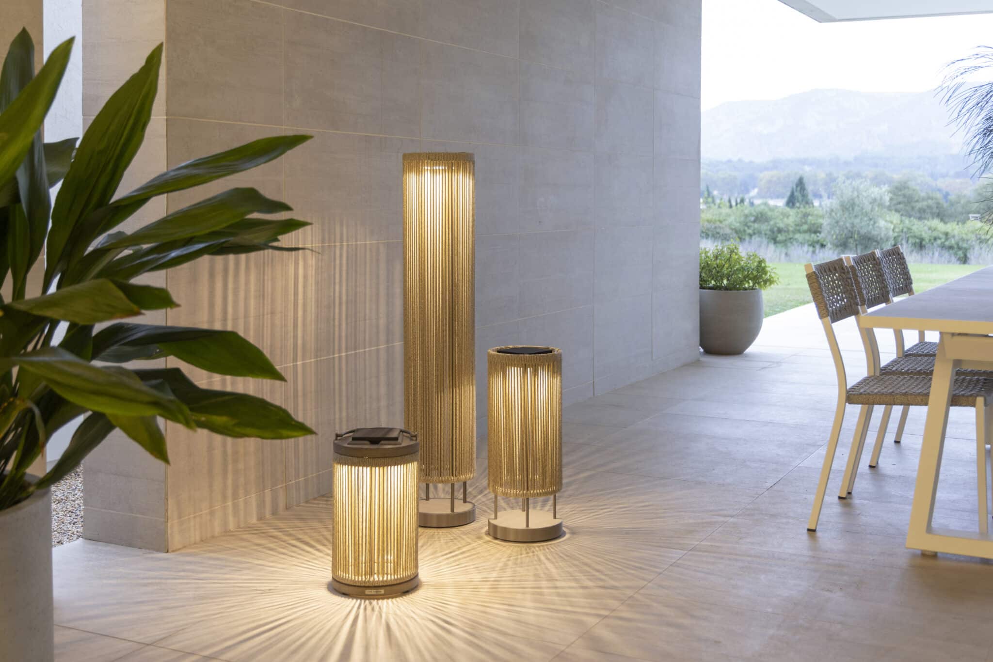 Lampe ROP&STRIP 500 Lumens 59 cm – Muscade est un luminaire solaire design conçu pour créer une ambiance chaleureuse sur une terrasse ou dans un jardin. Son habillage en corde ronde beige chinée associé à l’aluminium muscade apporte une touche naturelle et contemporaine.