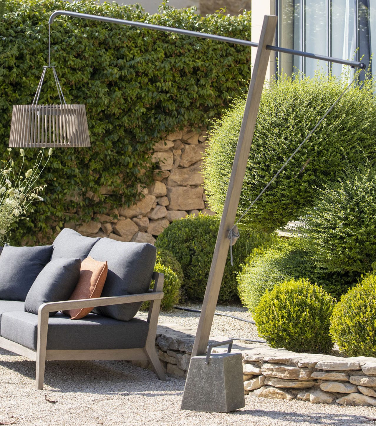 Avec sa hauteur de 240 cm et sa potence de 200 cm, la Structure SKAAL Potence 240 cm – Teck massif Duratek® offre une présence forte et raffinée. Elle structure l’espace extérieur tout en créant un point lumineux suspendu idéal pour un salon de jardin ou une table extérieure.
