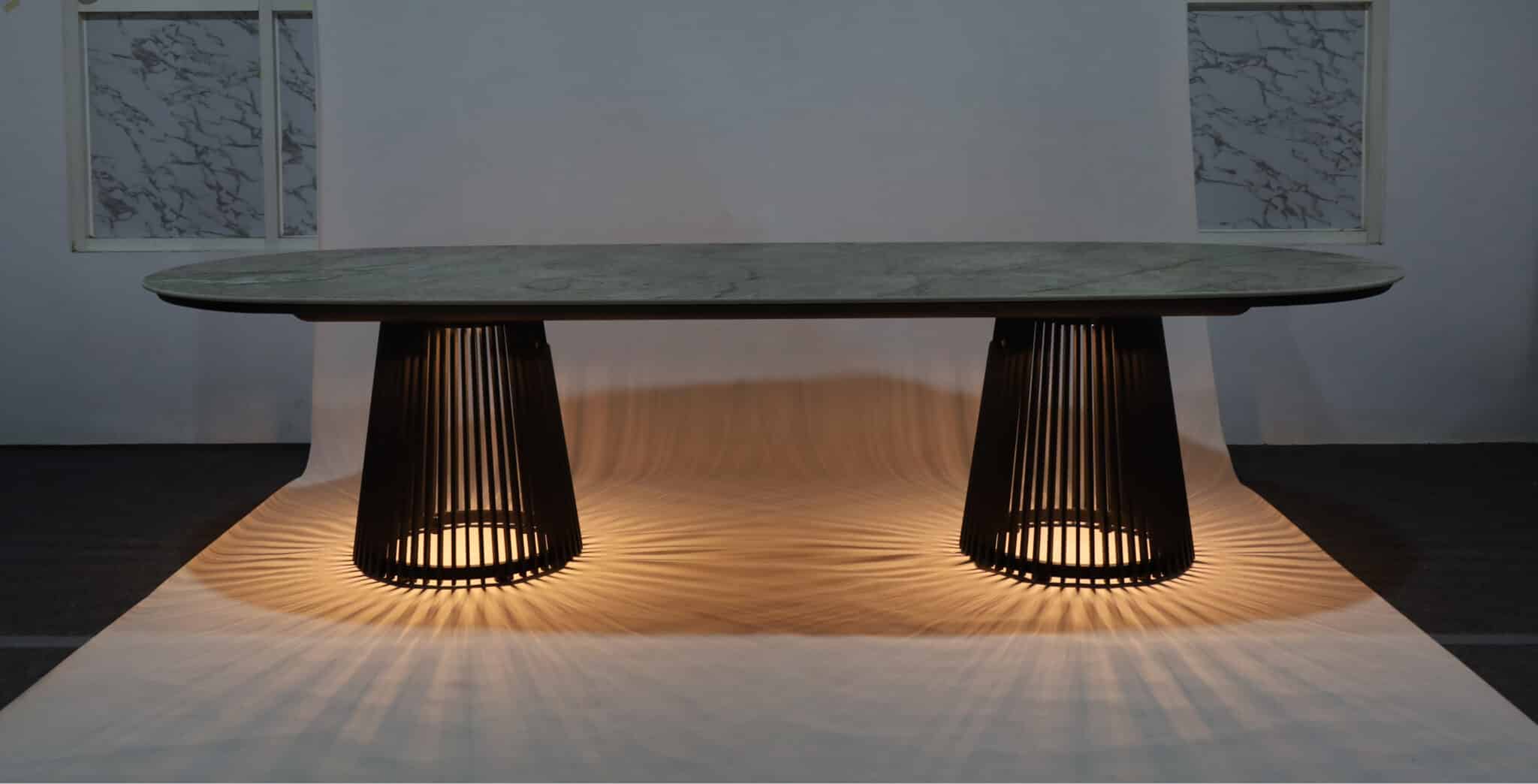 La table de repas lumineuse solaire HALO 12/14 places est une grande table lumineuse solaire et rechargeable conçue pour aménager un espace repas extérieur élégant et contemporain. Idéale pour une terrasse ou un jardin, elle associe une structure en aluminium noir à un plateau en céramique Salika pour offrir un rendu haut de gamme et durable.