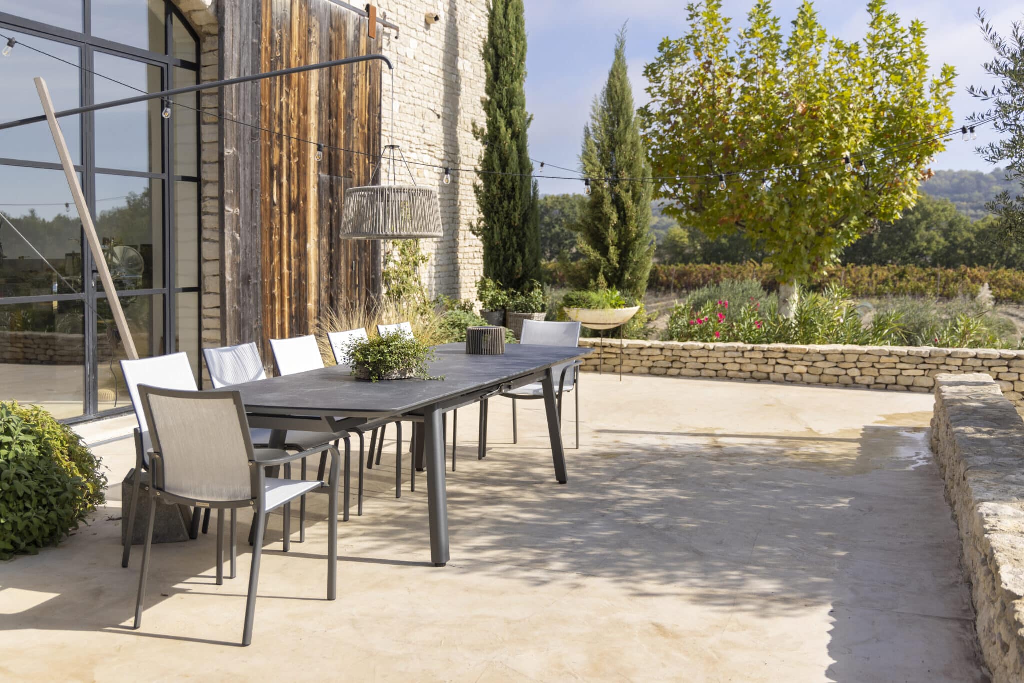 Ce modèle est idéal pour recevoir et partager des moments conviviaux en extérieur, grâce à sa capacité extensible et son design fonctionnel.