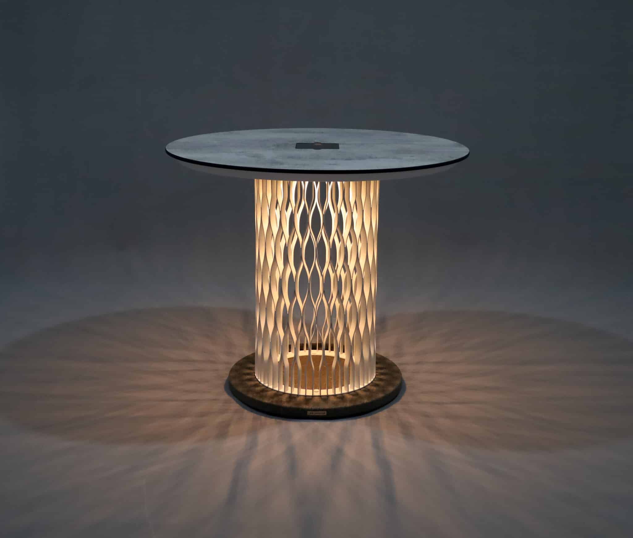 La table de repas lumineuse solaire CADIX – Blanc Ø110 cm est conçue pour apporter élégance et modernité à votre espace extérieur. Idéale pour une terrasse ou un jardin, elle associe une structure en aluminium blanc à un plateau en HPL béton ciré avec plaque en verre acrylique dépoli pour un rendu contemporain et haut de gamme.