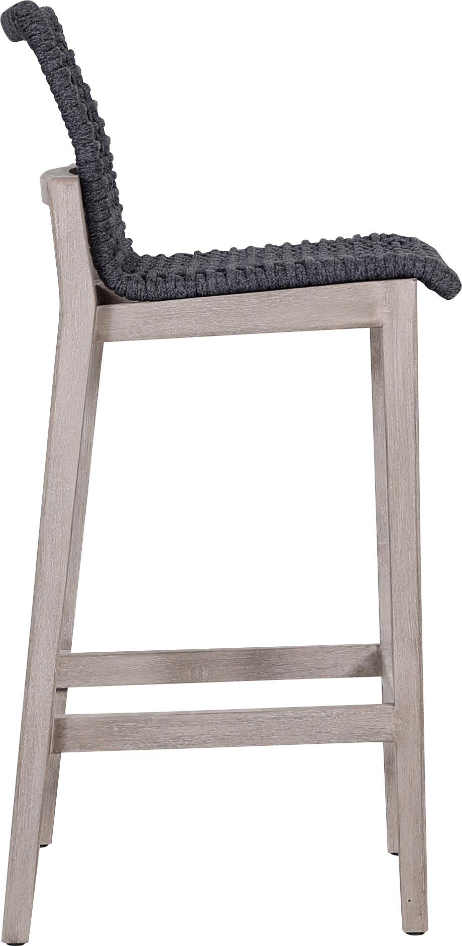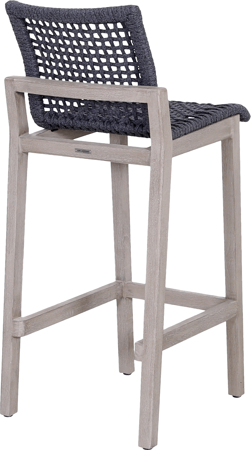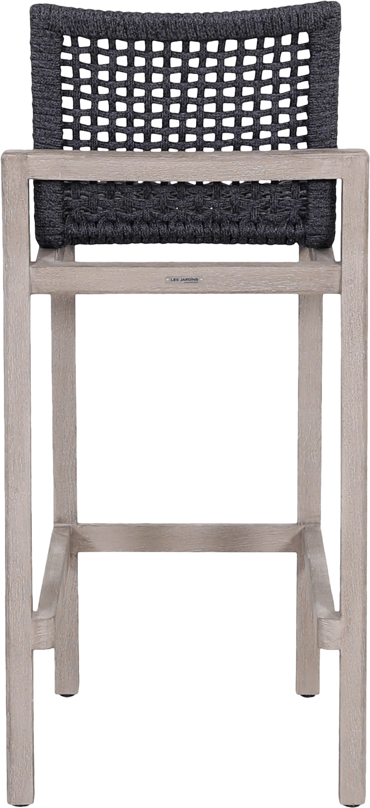 Le tabouret COPENHAGUE toile tissée graphite repose sur une structure en teck massif avec finition Duratek®, assurant stabilité et cohérence avec les autres éléments de la collection.