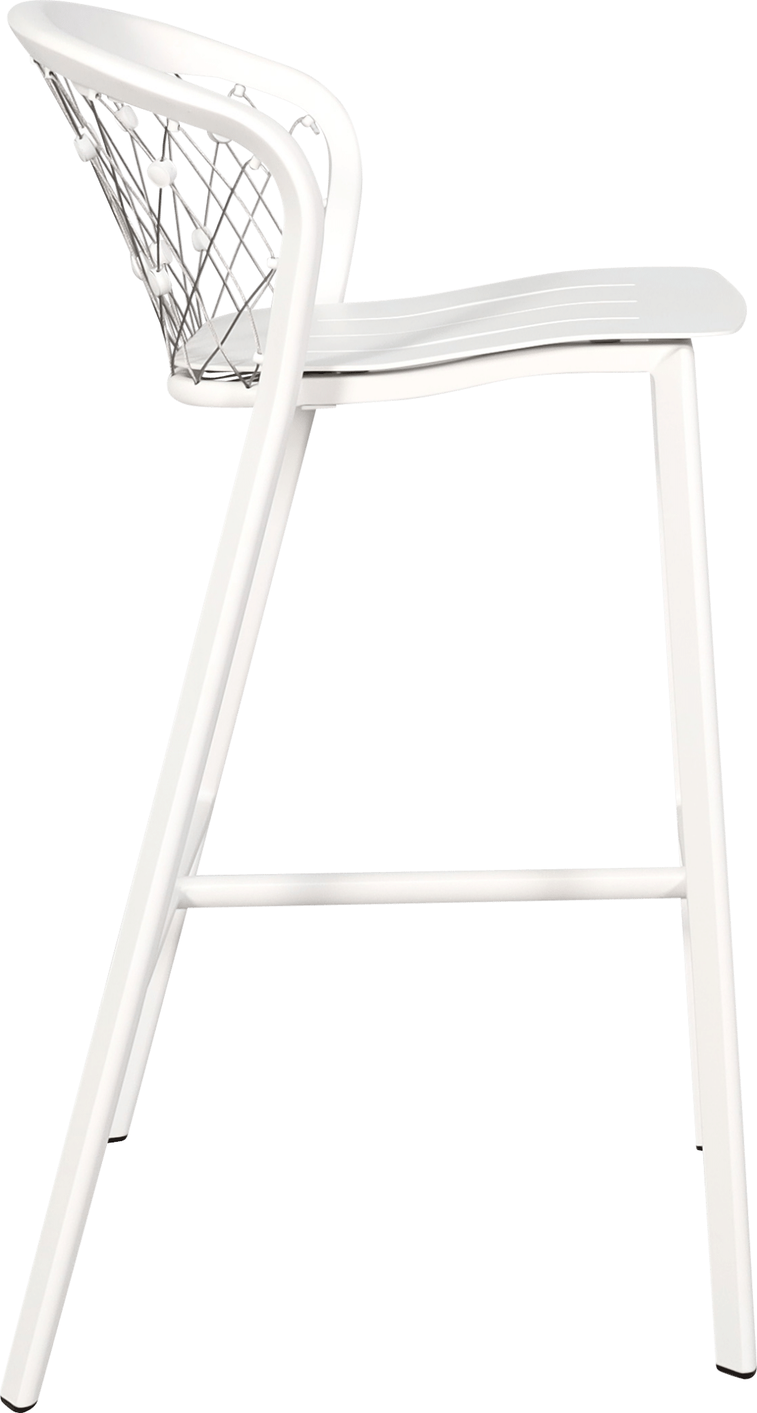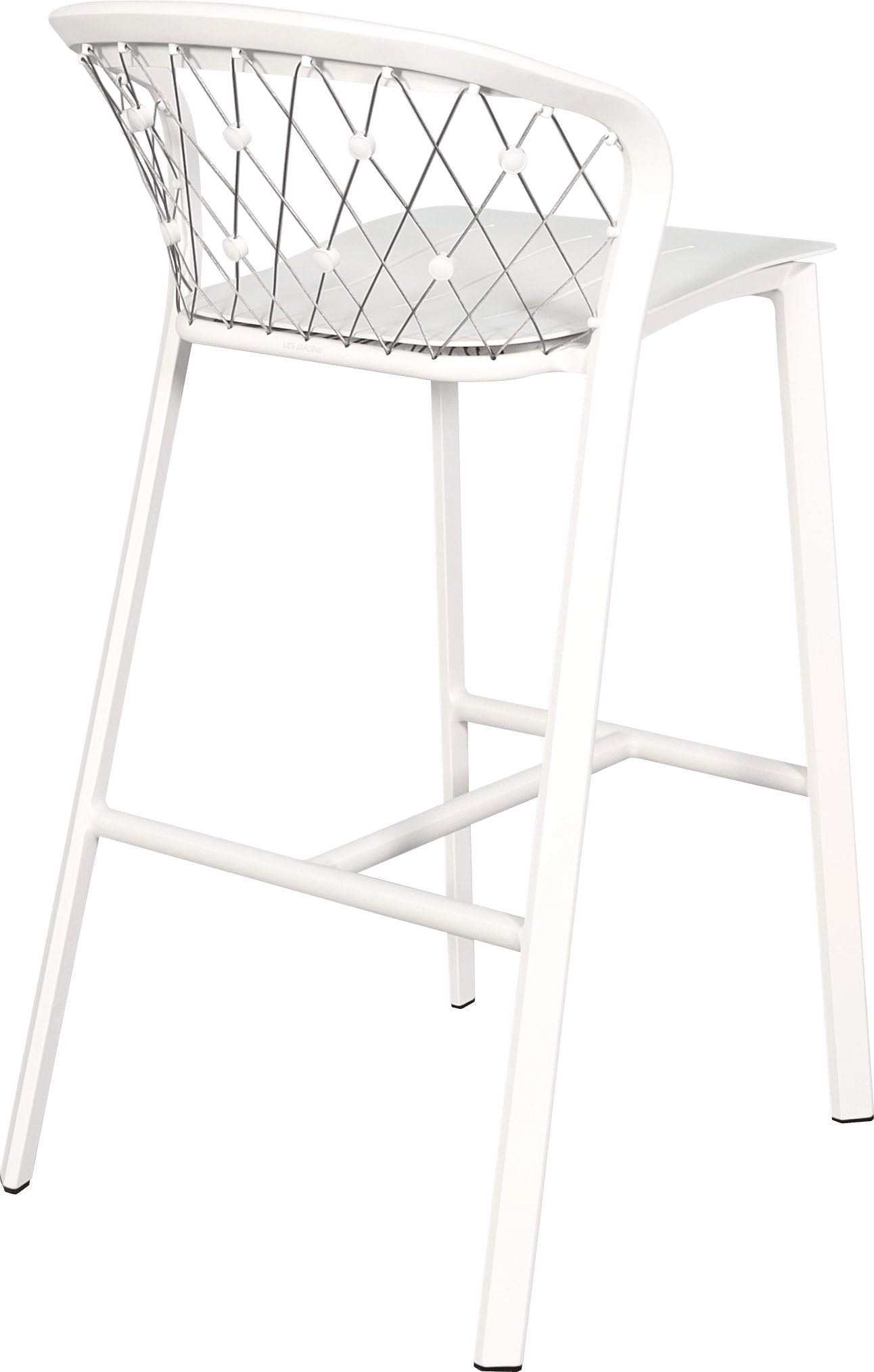 Ce tabouret de bar jardin est fabriqué en aluminium blanc avec des câbles en inox 316, garantissant une excellente résistance face à l’humidité, aux UV et aux variations climatiques. Il est parfaitement adapté à un usage extérieur intensif sans risque de corrosion.